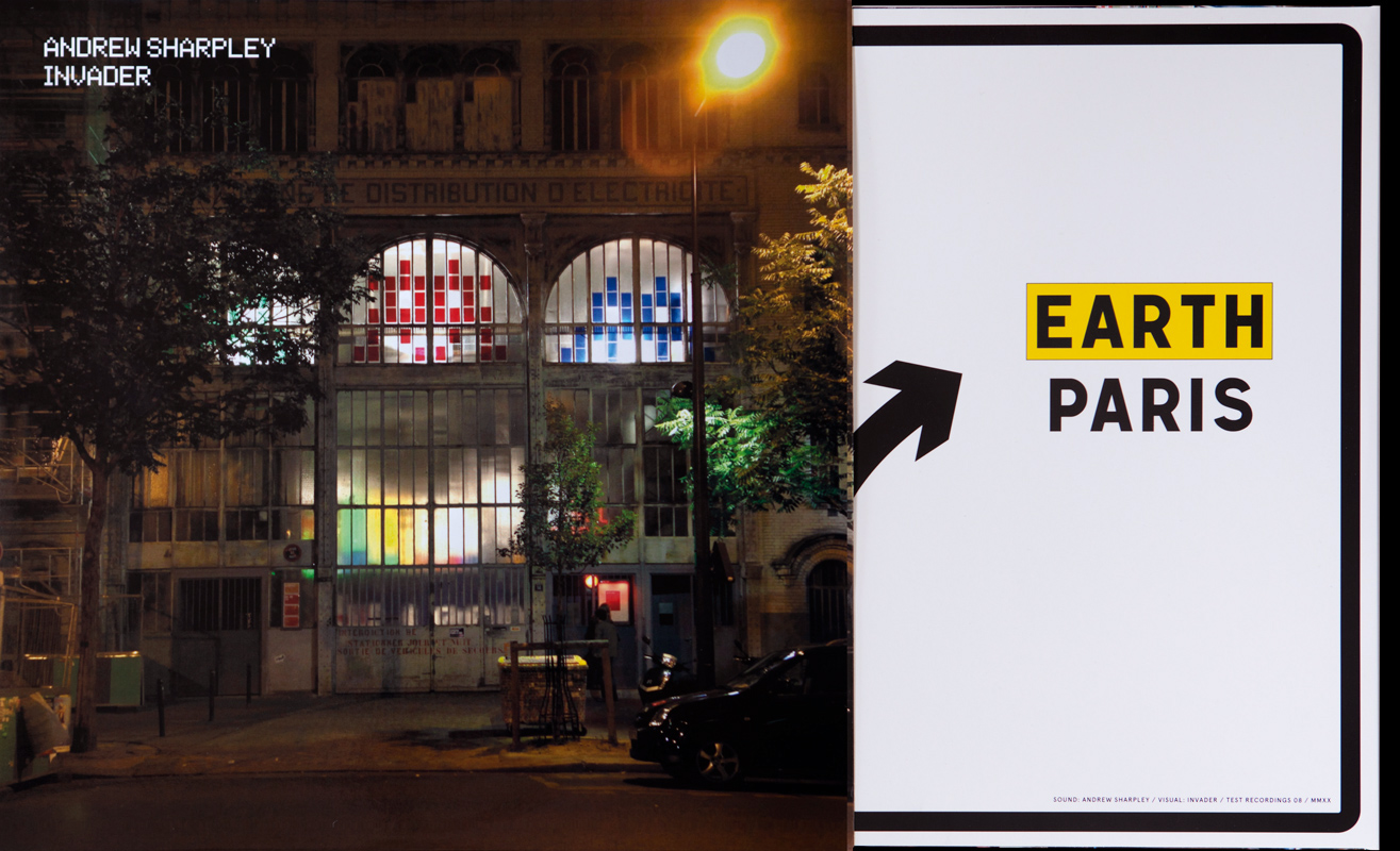 J’ai découvert et je suis tombé amoureux du travail d’Andrew Sharpley dans les années 90 lorsqu’il faisait partie du duo electro expérimental de Manchester Stock Haussen and Walkman. J’ai réussi à les rencontrer lors d’un live à Paris et quelques mois plus tard, je rejoignais le groupe en projetant des images sur scène pendant leurs set (C’est ainsi que j’ai envahi les villes d’Aix en Provence et Nantes car après les concerts je passais la nuit à conquérir les rues). Lorsqu’en 2011 j’ai monté l’exposition « 1000 » qui célébrait mon 1000è space invader parisien, j’ai demandé à Andrew s’il voulait bien jouer en live le jour du vernissage dans l’immense comptoir électrique où avait lieu l’exposition. Il a exécuté un mix de 4h dans lequel il utilisait et triturait des dizaines de morceaux contenant les mots "Space Invaders". En retrouvant ce matériel en 2020, nous avons décidé d’en faire un album, d’abord en téléchargement numérique sur Bandcamp, puis sous la forme d’un 33t limité à 1000 exemplaires. Après des mois de retard pour cause de pandémie mondiale, nous venons de le recevoir et il sera disponible en ligne sur la Space shop d’ici quelques jours.