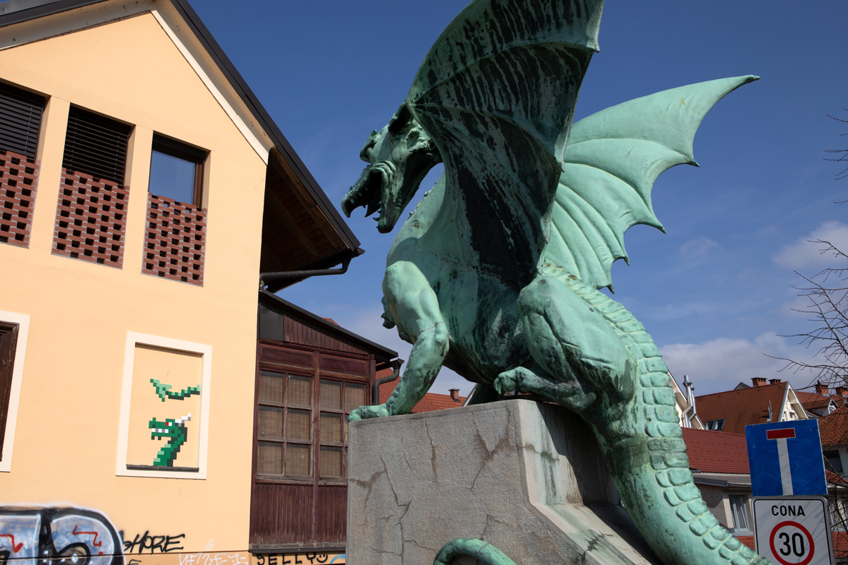 The invasion of Ljubljana wave2 counts 22 new mosaics in addition to the 20 first ones I had installed back in 2006 at the occasion of a previous exhibition at MGLC. As it is the symbol of the city, I have chosen the dragon as a common thread of this invasion.