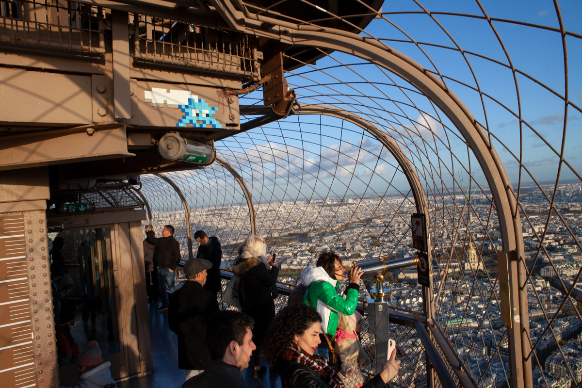 PA_1431, le plus haut des space invaders parisiens, vient d'être installé au somment de la Tour Eiffel.