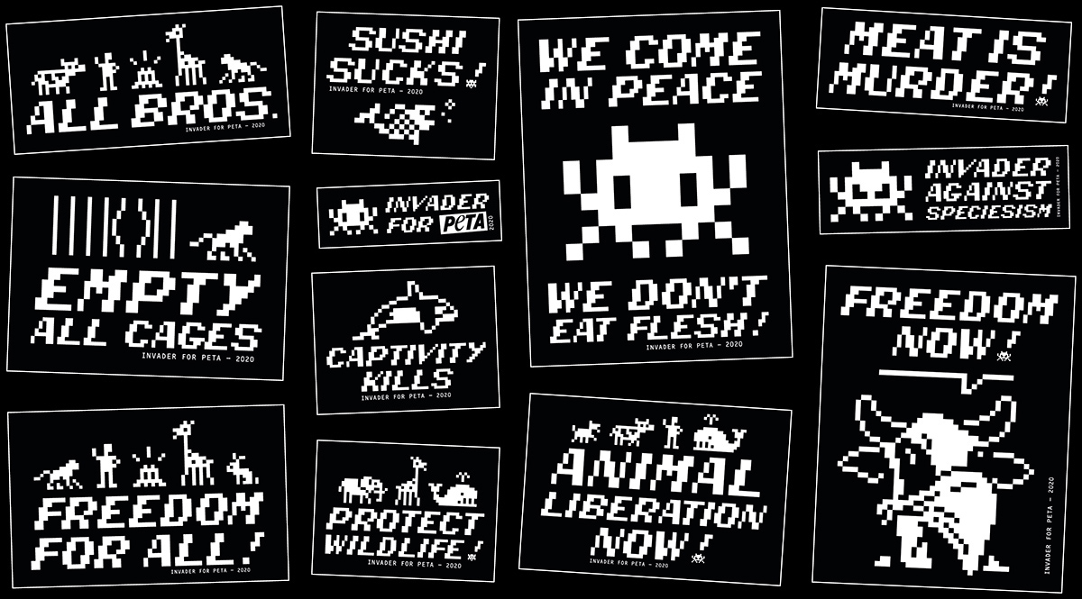 Je suis fier d'avoir créé ces 12 visuels pour soutenir PETA et la cause animale. Il est grand temps de combatre l'expoitation, la maltraitance et l'extermination des espèces non humaines. Des stickers et T-shirts seront disponibles sur la space-shop aujourd'hui, 100% des bénéfices seront reversés à PETA.