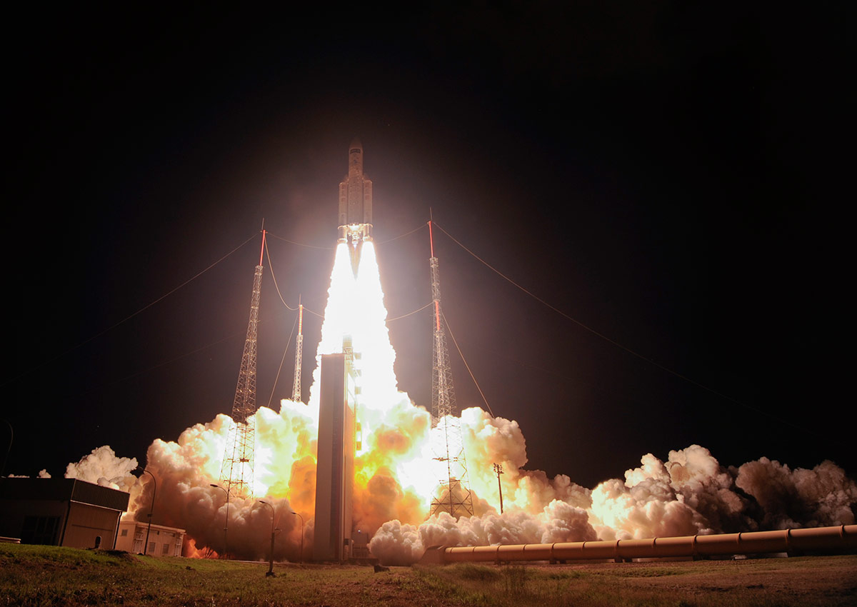 Décollage d'ATV-5 transportant Space2 propulsé par Ariane5, base de lancement ESA de Kourou, 29 July 2014 / Photo : ESA–S. Corvaja
