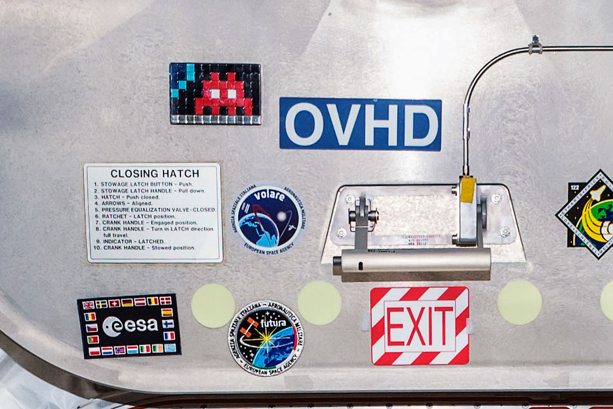 Envoyée le 29 juillet 2014 à bord de l'ATV5 propulsé par la fusée Ariane5, Space2 a attendu plusieurs mois en apesanteur dans l'ISS l'arrivée de l'astronaute Samantha Cristoforetti (@astroSamantha) pour trouver sa place définitive. C'est finalement sur le sas du module européen Columbus que la mosaïque a été posée ce matin.