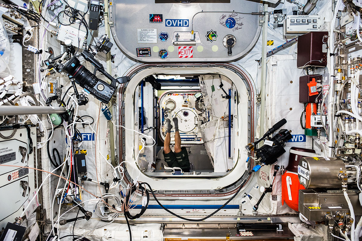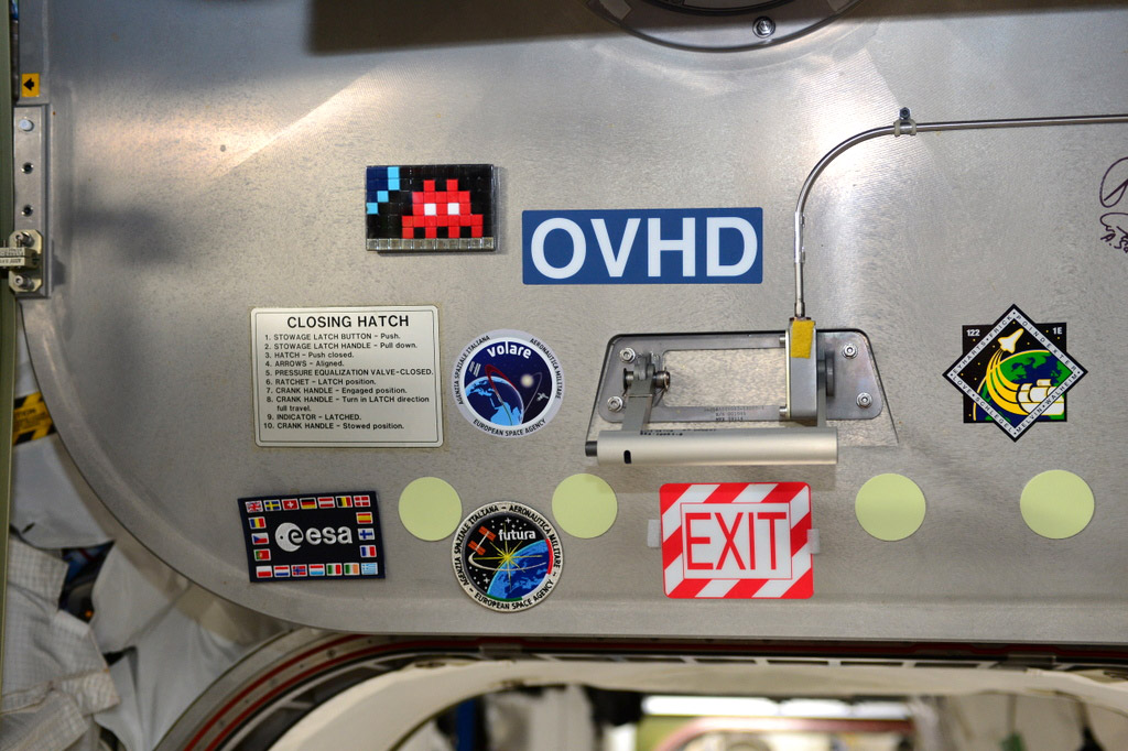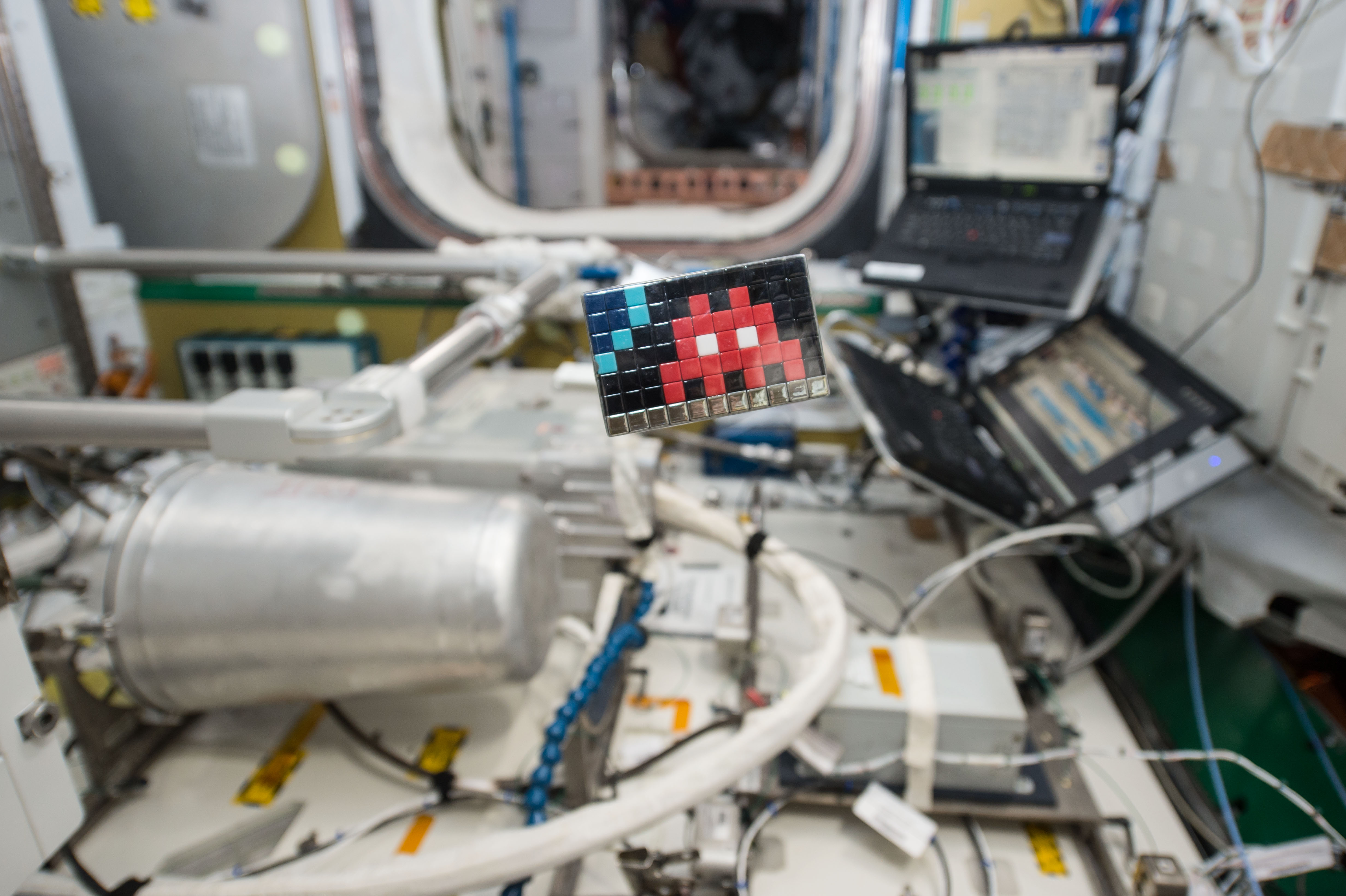 Le 12 mars 2015, Space2 est collé sur la paroi du module Colombus, devenant ainsi la première oeuvre d’art installée dans l’espace.
