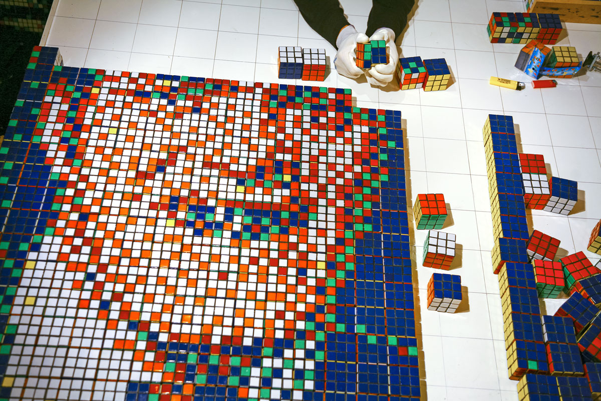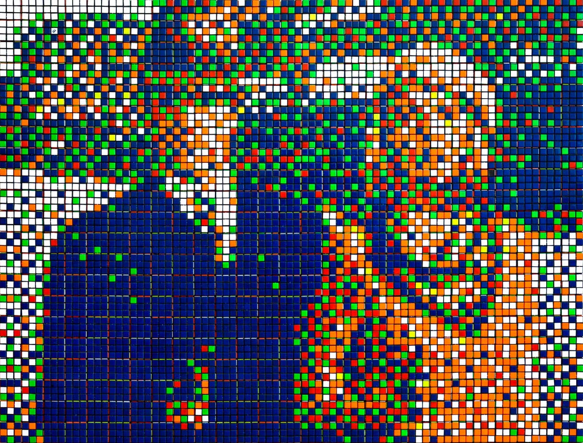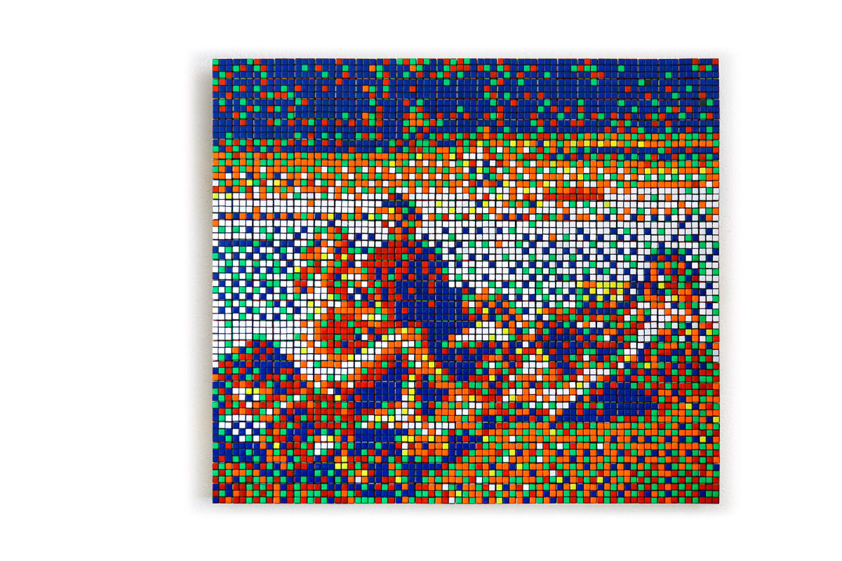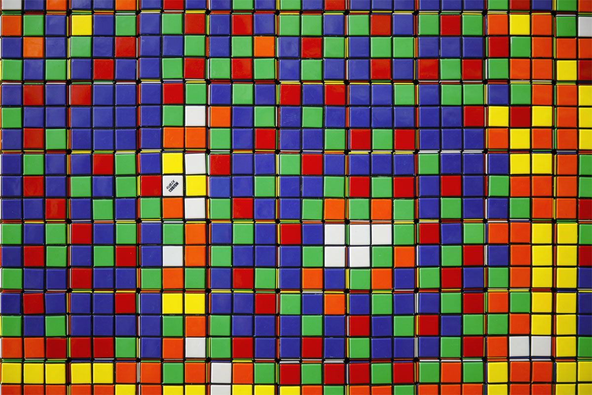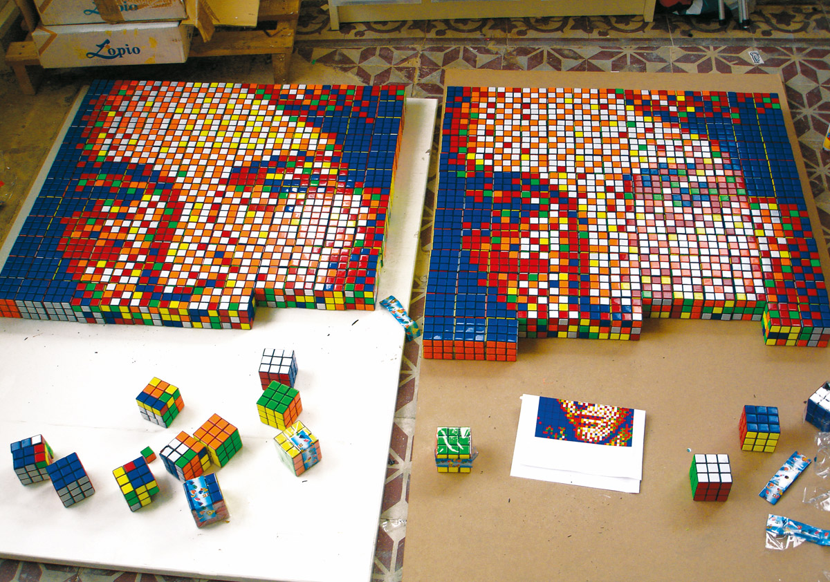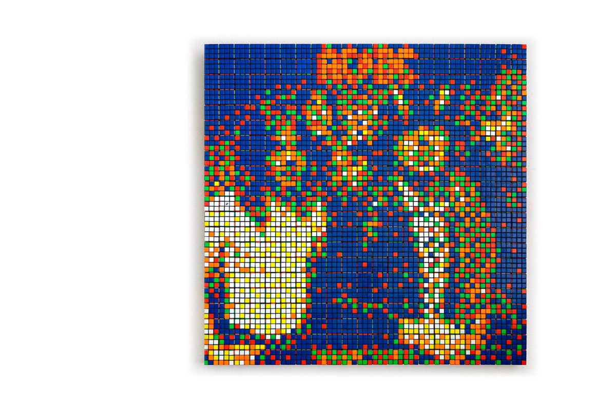 In 2005, Invader continues his exploration of the link between pixels and mosaics by creating artworks made of Rubik's cube. Rubikcubism is born!